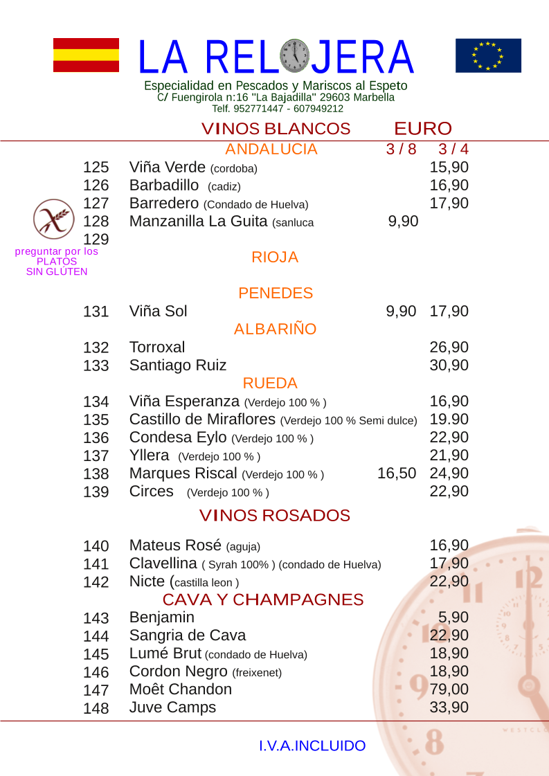 Welcome to Restaurante La Relojera, a hidden gem nestled in the heart of Marbella, Spain. Located at Calle Fuengirola, N:16, this authentic Andalusian dining spot is where culinary tradition meets relaxed hospitality. With glowing reviews from satisfied diners, the restaurant is well-loved for its friendly staff and welcoming atmosphere.